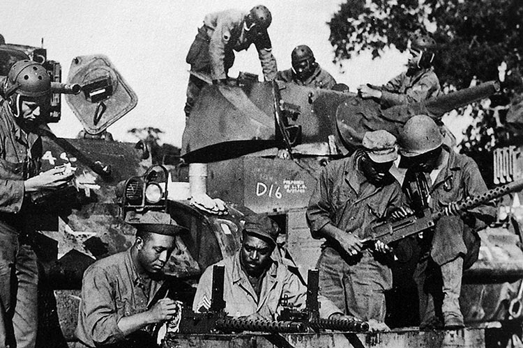 First Lieutenant Jack Roosevelt Robinson of the 761st, an athlete who would become one of the greatest baseball players of all time, lost his chance to see combat when he refused to move to the back of a segregated military bus during an incident at Fort Hood, Texas in July 1944. The 761st Tank Battalion’s commander, Lt. Col. Paul L. Bates, refused to prosecute Robinson, but his superiors got around that by transferring the lieutenant to another unit, where he was court-martialed. Robinson was later acquitted, but too late to rejoin the Black Panthers.