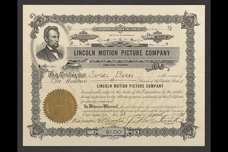 Lincoln Films earned a reputation for highlighting African American talent across the full spectrum of cinema. The company was officially incorporated on January 20, 1917, with the value of produced films and equipment appraised at $15,623.68 by Henry McRae, manager of production at Universal, and actor Harry Carey, who often used Noble Johnson as a character actor in his films (Johnson’s film career in Hollywood began in 1913 and included a small role in Cecil B. DeMille’s The Squaw Man), and on April 30, 1917, it received approval to issue 25,000 shares of common stock.